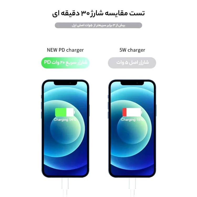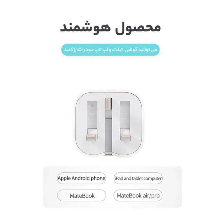 شارژر فست 20 وات اپل مدل B/A،دارای خروجی USB TYPE-C،امکان شارژ سریع موبایل،تبلت و آیپد با شدت جریان 2.0 آمپر و بالاتر
