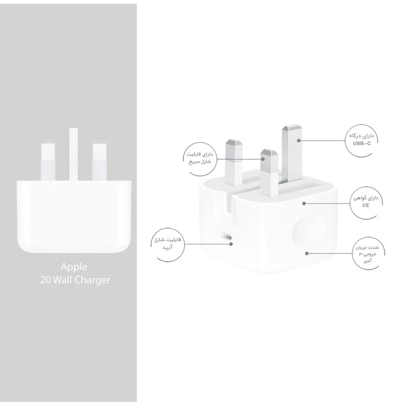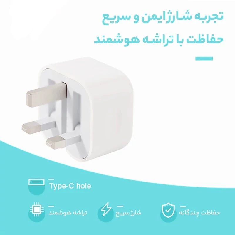 شارژر فست 20 وات اپل مدل B/A،دارای خروجی USB TYPE-C،امکان شارژ سریع موبایل،تبلت و آیپد با شدت جریان 2.0 آمپر و بالاتر