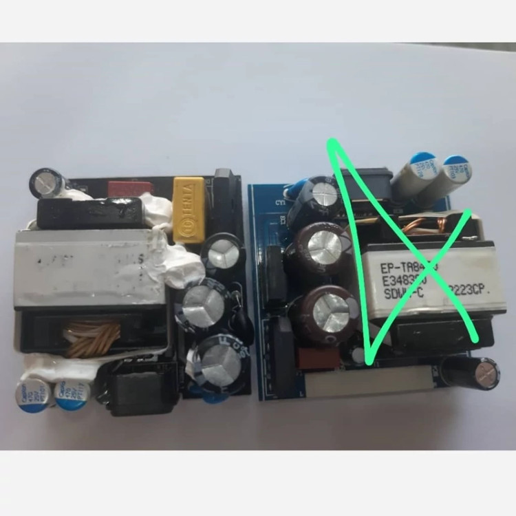 برد سمت راست که با ضربدر نشون داده شده فیک و کم کیفیت میباشد و برد سمت چپ برد شارژر 45 فروشگاه ما است