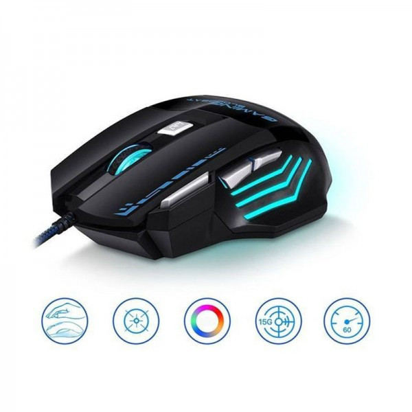 اتصال به صورت سیمی | طول کابل 150 سانتی متر | رابط کاربری USB-A | تعداد کلید 7 عدد | دقت حرکت متغیر و قابل تنظیم در بازه 800-1200-1600-2400 DPI | نورپردازی جذاب و کاربرپسند | ابعاد 13*8*4 سانتی متر | طراحی ارگونومیک | قابل استفاده برای انواع بازی و گیم | گارانتی 12 ماه ماد امواج آریا