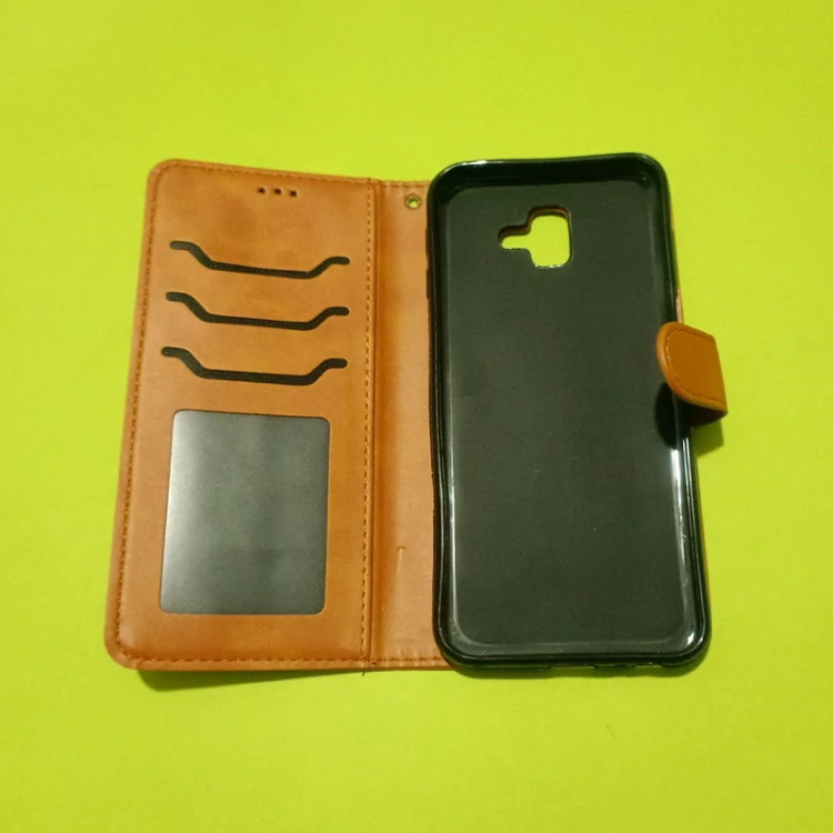 کیف کلاسوری چرمی اورجینال مگنتی جا کارتی دار مناسب برای گوشی سامسونگ J6+/J6plus