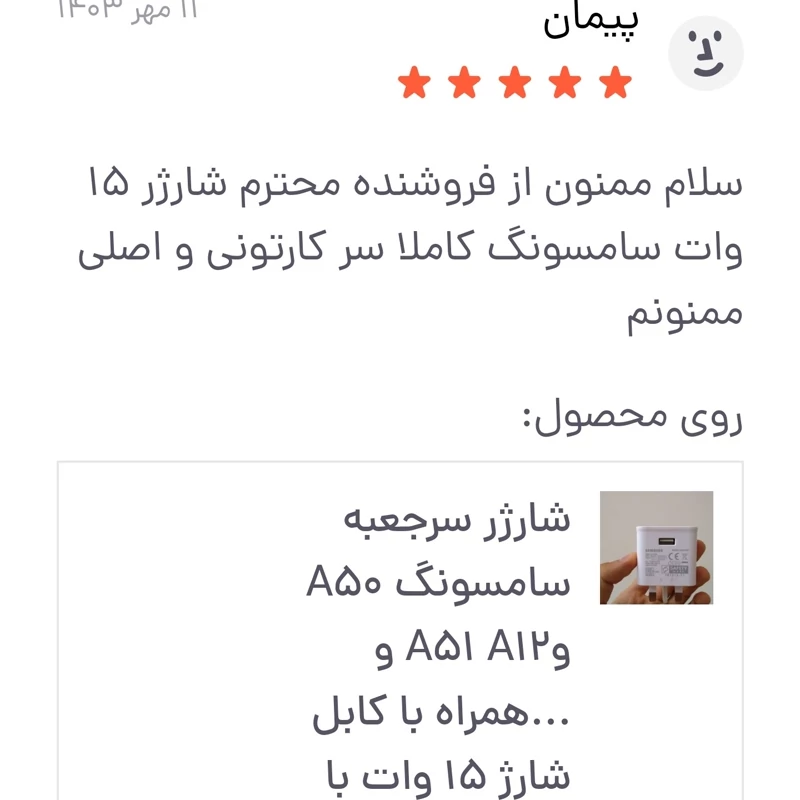 شارژر اورجینال سامسونگ a51 a50 و.... به همراه کابل شارژ 2 سر تایپ سی دارای توان 15وات با قابلیت شارژ سریع کیفیت عالی