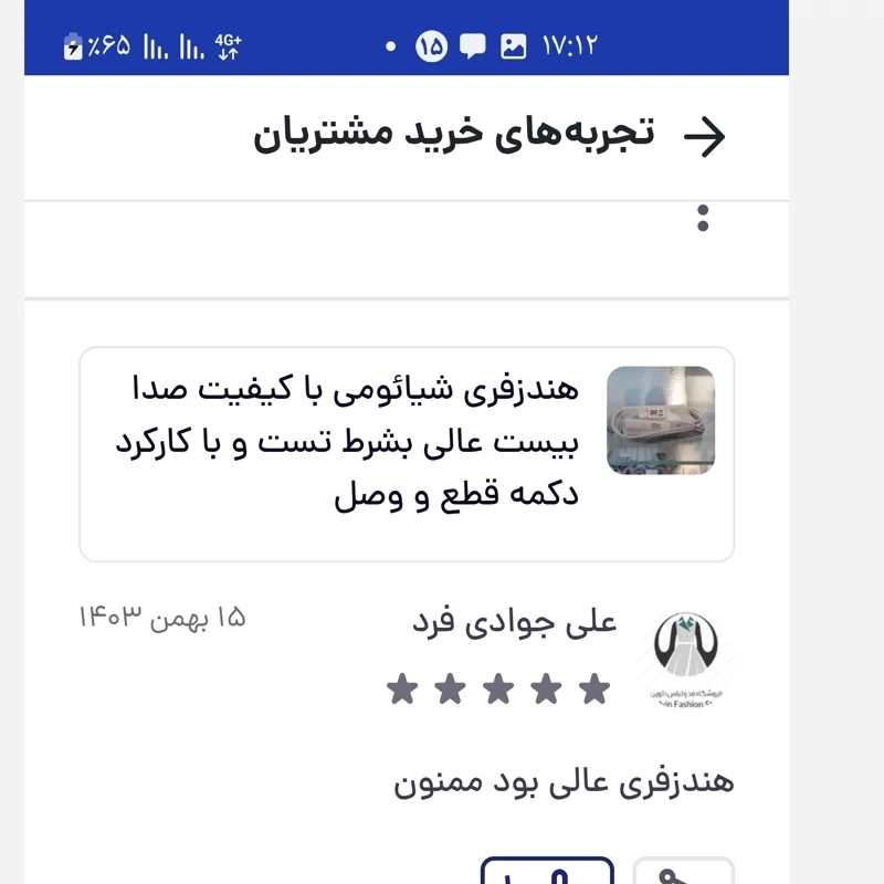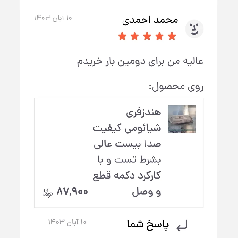 هندزفری شیائومی با کیفیت صدا بیست عالی بشرط تست و با کارکرد دکمه قطع و وصل