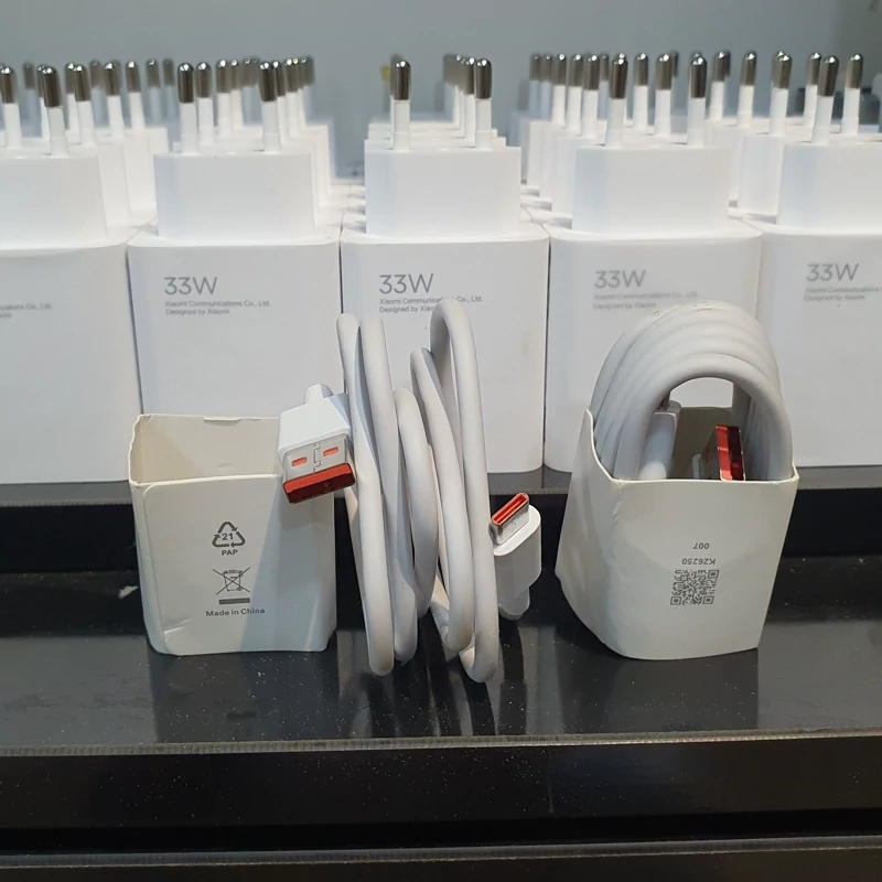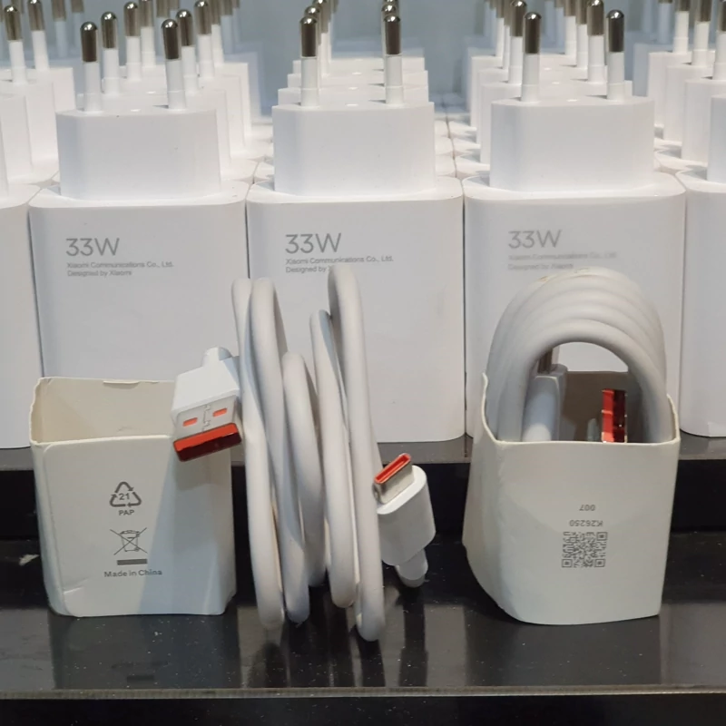 شارژر(آداپتور)33وات اصلی شیائومی 33w سرکارتنی همراه کابل شارژ تایپ سی پورت نارنجی،دارای فناوری توربو شارژر ثانیه شمار