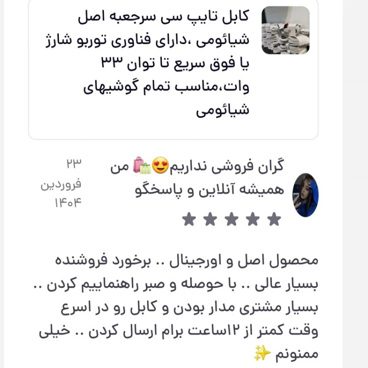 کابل شارژر سرجعبه شیائومی 33w تایپ سی Type C با توان 33 وات با فناوری توربو شارژ یا فوق سریع با ضمانت و تست 10 روزه