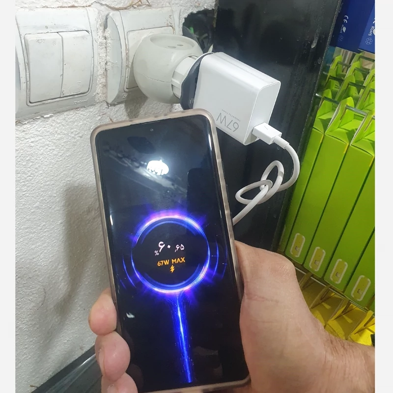 شارژر اصلی شیائومی 67 وات67w سرکارتنی بهمراه کابل6A اصلی توربوشارژر max و ثانیه شمار