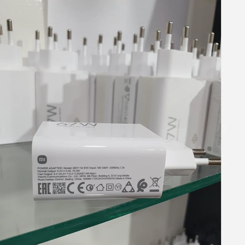 شارژر(آداپتور)شیائومی67 وات67w سرکارتنی اصلی بدون کابل توربوشارژر،max ،ثانیه شمار