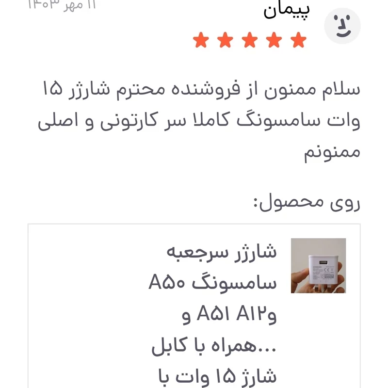 شارژر اورجینال سامسونگ A50 وA51 A12 و ...همراه با کابل شارژ 15 وات 2سر تایپ سی با قابلیت شارژ سریع