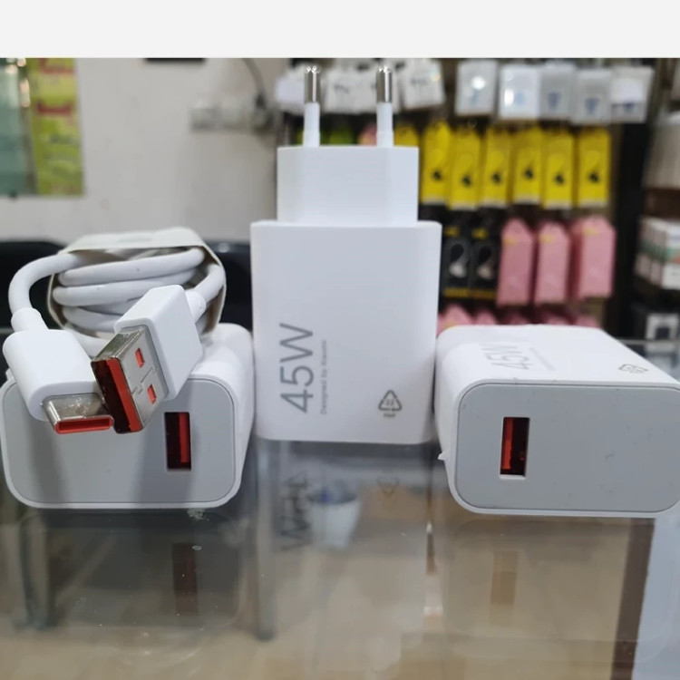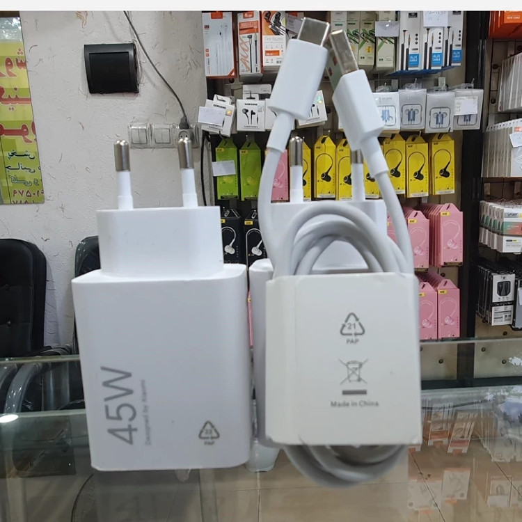شارژر 45وات داخل جعبه 45Wشیائومی سرجعبه همراه با کابل فابریک 4A با تضمین اصلی بودن با مهلت تست 30 روزه