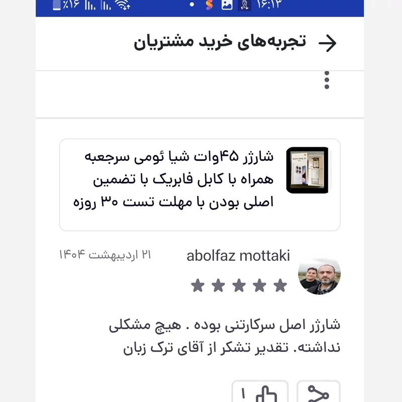 👍کلگی 45وات و کابل 3 آمپر پورت نارنجی توربوشارژر شیائومی از داخل جعبه اصلی برداشته شده است