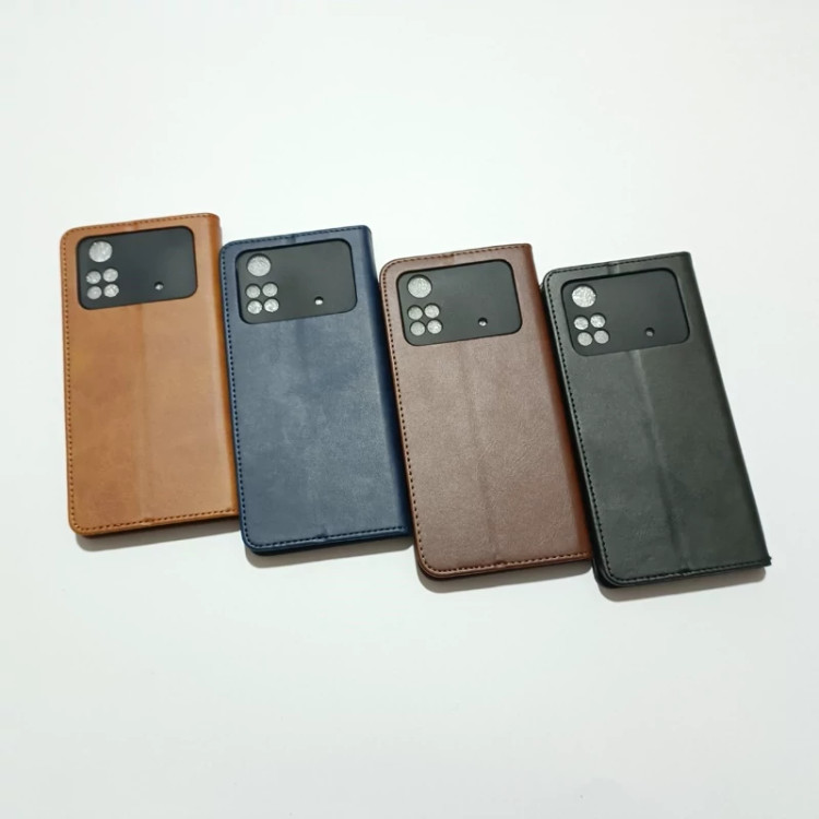 کیف کلاسوری چرمی مگنتی محافظ لنز دار مناسب برای گوشی موبایل شیائومی Poco M4pro 4g