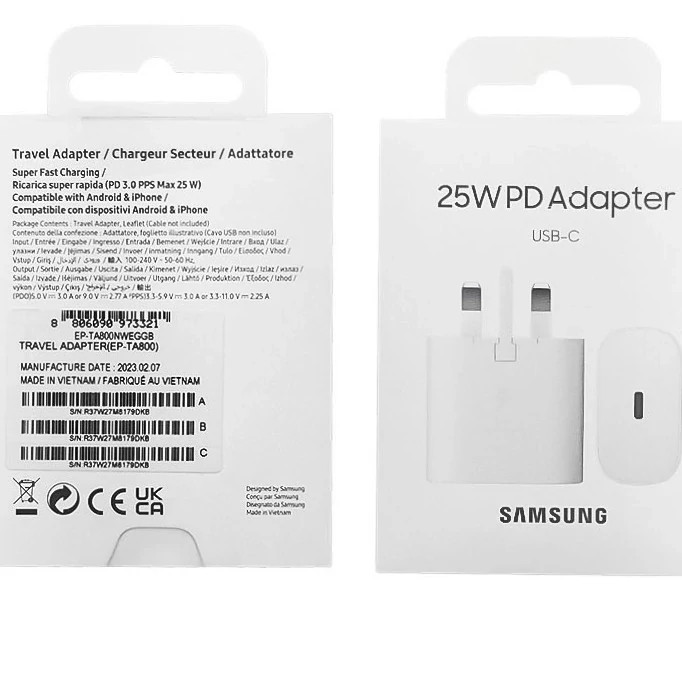 شارژر دیواری اورجینال 25w سامسونگ مدل EP-T2510 آداپتور 25وات سه پین