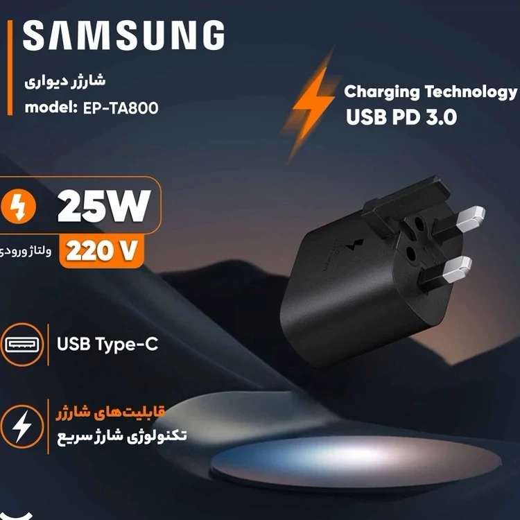 شارژر دیواری اورجینال 25w سامسونگ مدل EP-T2510 آداپتور 25وات سه پین