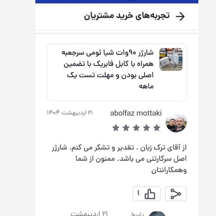 در باره محصول : 👍کلگی 90وات و کابل 6 آمپر پورت نارنجی توربوشارژر شیائومی از داخل جعبه اصلی برداشته شده است 👍قابلیت شارژر فوق سریع TORBO CHRGE 👍طول کابل 1متر 👍شارژر پین آسیایی است 👍کیفیت محصول 100 درصد اصلی است 👍با اطمینان و با تضمین فروشگاه خرید بفرمایید در صورت عدم مغایرت با توضیحات و اصالت کالا وجه شما عودت میشود 🙏 با خیال راحت و بشرط اصلی بودن و اطمینان خرید کنید